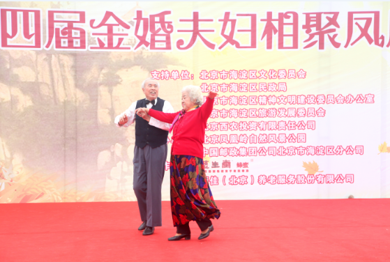 为了弘扬中国传统美德,倡导正确的婚姻观,积极引导当代青少年传承中华民族尊老、敬老、爱老的传统孝道文化,进一步推动社会和谐健康发展,在北京市海淀区文化委员会、北京市海淀区民政局、北京市海淀区旅游发展委员会、北京市海淀区精神文明建设委员会办公室、北京西农投资有限责任公司的共同支持下,第十三届海淀文化节系列活动之“凤凰于飞 一生相随”——2016第四届金婚夫妇相聚凤凰岭大型公益活动于2016年10月15日隆重举行。