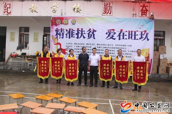 6月5日,佛山市民政局、佛山军分区、佛山市残联驻旺玖村扶贫工作组携手广东狮子会佛山代表处组成43人的爱心服务队,冒雨来到云浮市郁南县旺玖村举办“精准扶贫,爱在旺玖”专题公益慈善活动。