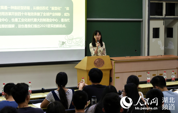 华中科大校长登上讲台,谈从精准扶贫看大学生责任。(周雯 摄)