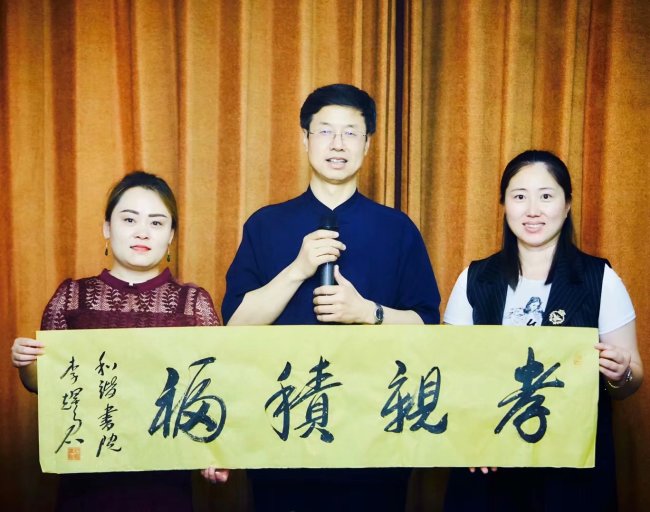 李耀君向与会幼儿园园长赠送书法:孝亲尊师